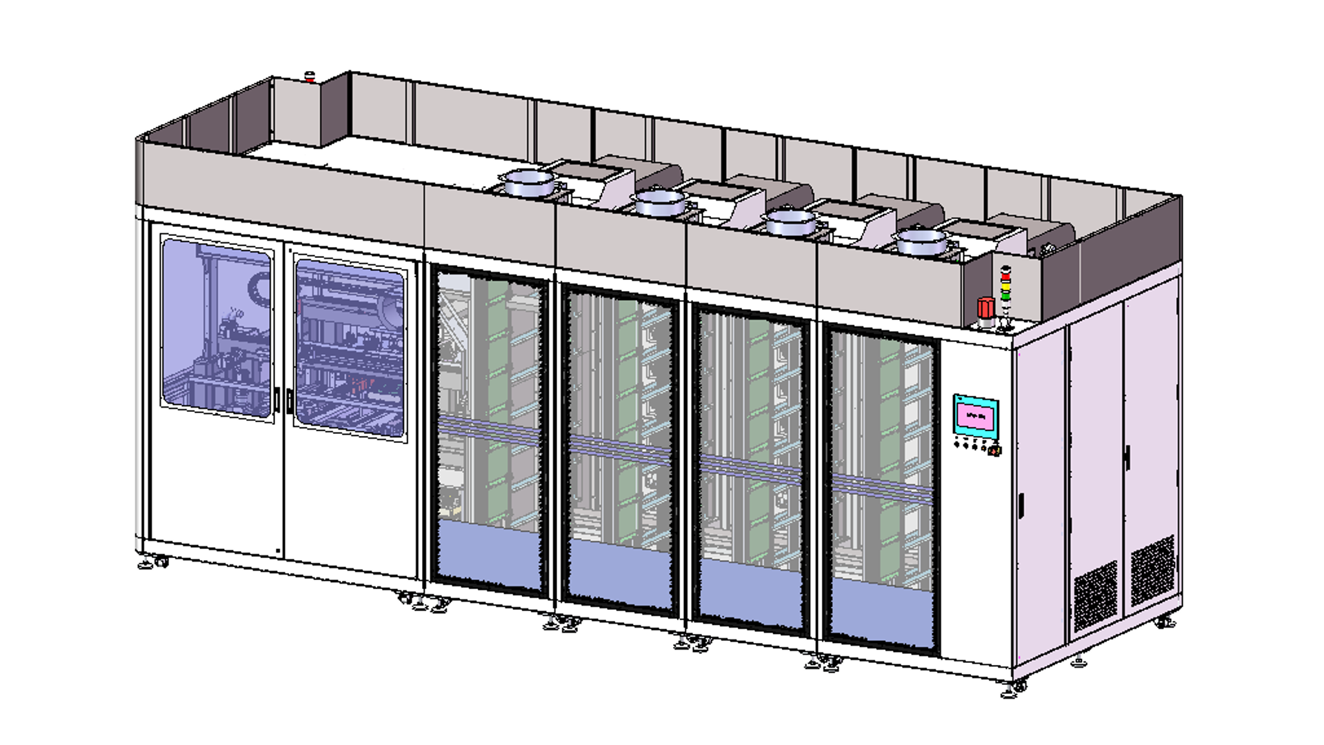 3.运作方式:采用传送轨道&测试托盘运输模式,在测试站自动托盘与测试对接。